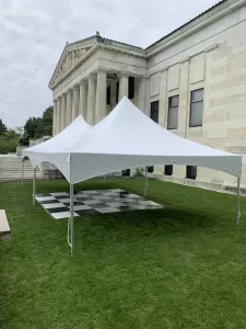 Both sizes are available with the full range of Able Tent Rental’s add-ons, including bistro string lighting, cathedral window sidewalls, and the signature black and white checkered dance floor that has become one of the most requested add-ons in the inventory.